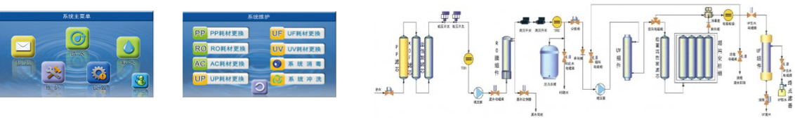 ■ 全自動微電腦控制系統(tǒng),多級菜單式操作,控制器采用32位微功耗處理器作為控制核心,具備超高運算率、低功耗的特點,集成水處理所需的模擬量傳感器接入、開關信號輸入、控制輸出以及水質(zhì)電導率、電阻率、水流量、水壓和水箱液位的在線監(jiān)測。